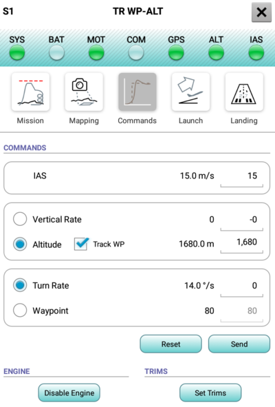 - Commands: The ability to set commands to the aircraft.